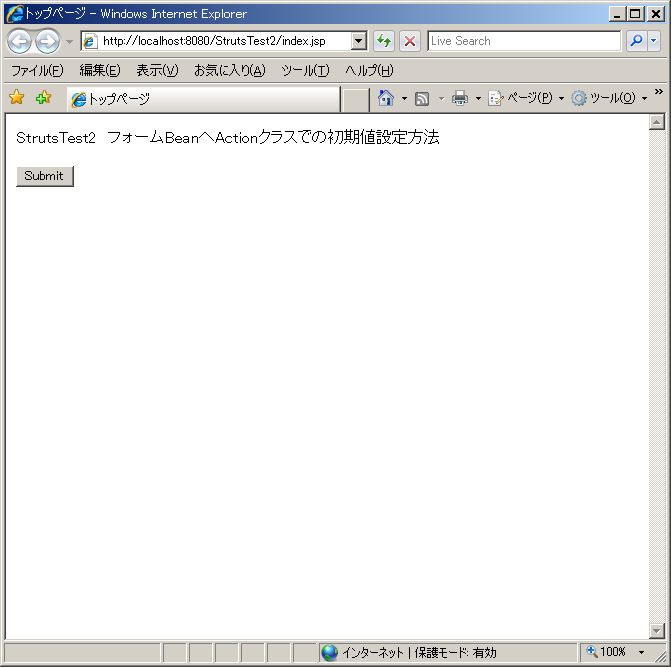 このサンプルでは、Inputのフォームがすでに、struts-config.xmlに記述してあるため、struts-config2.xmlでは記述していませんが、実行可能です。